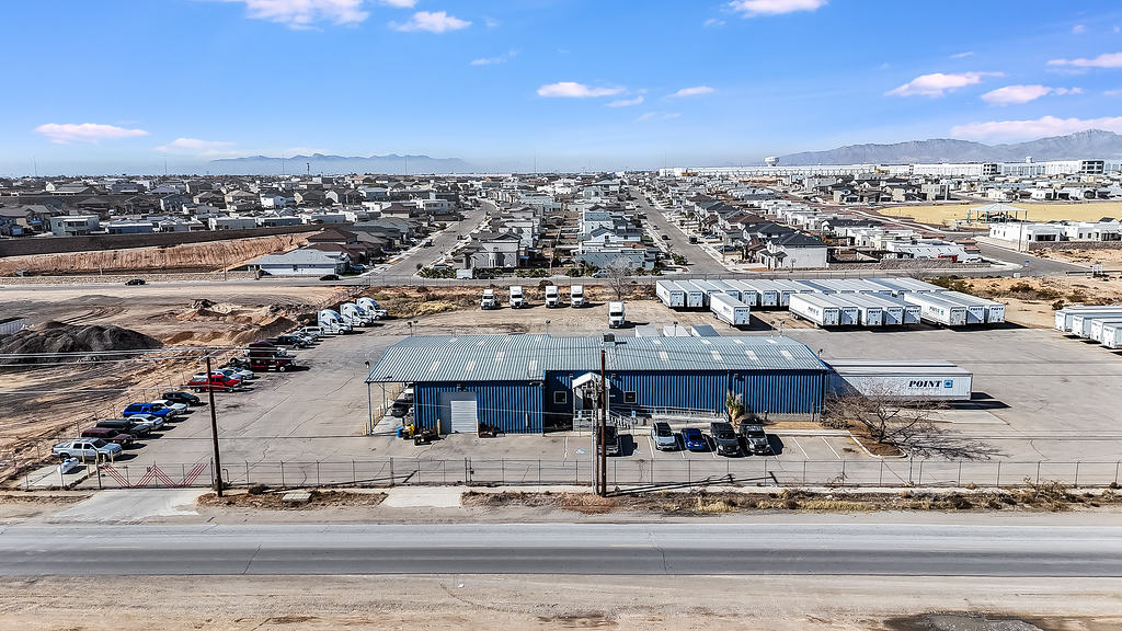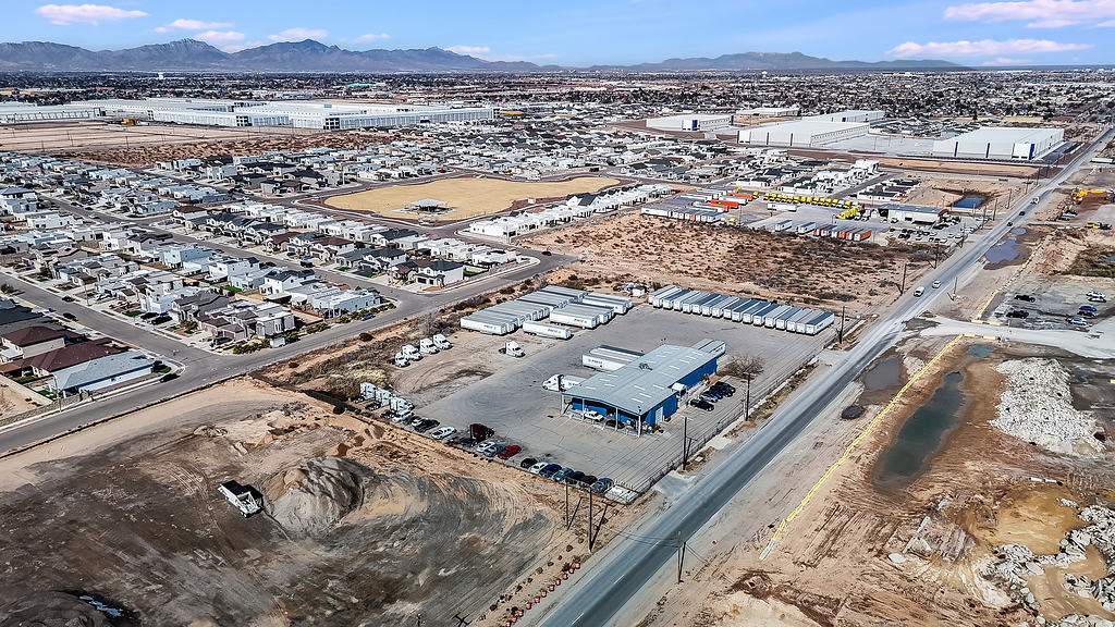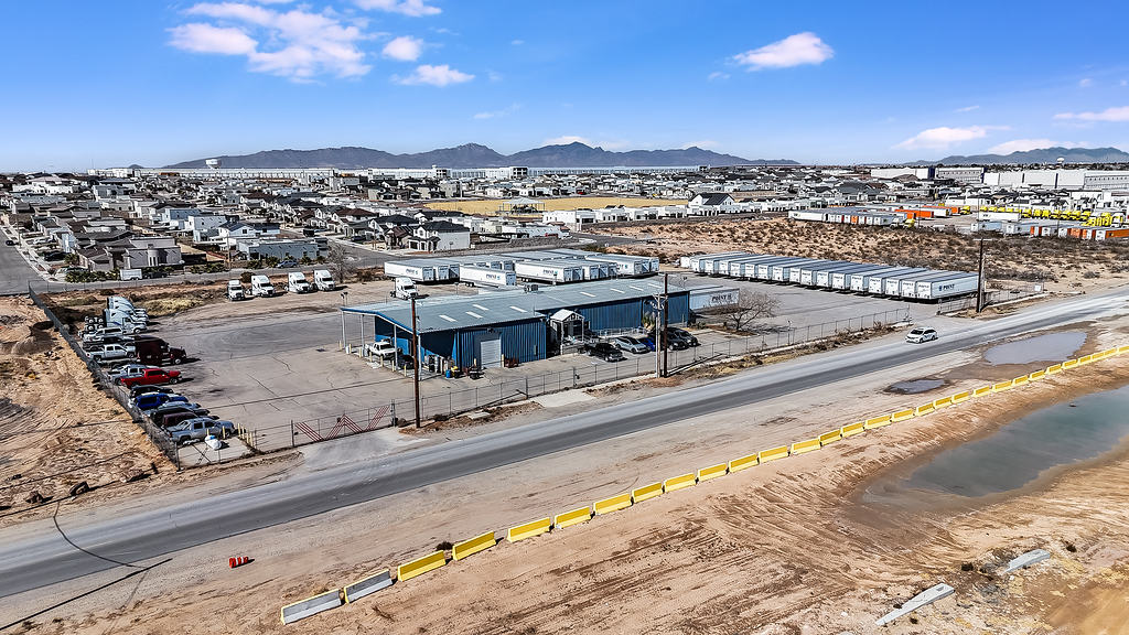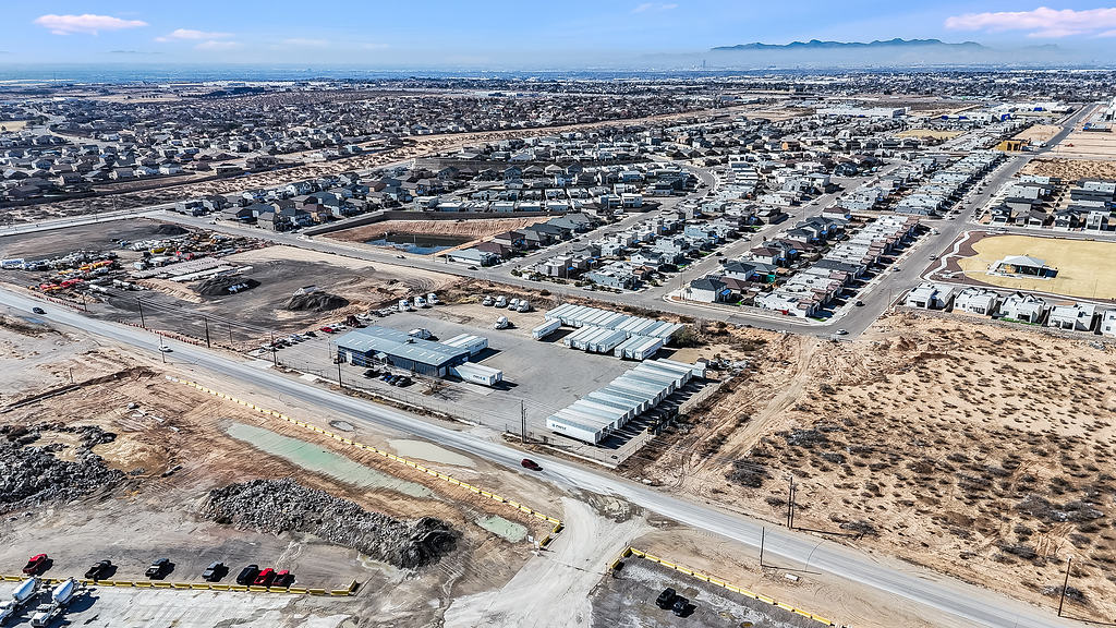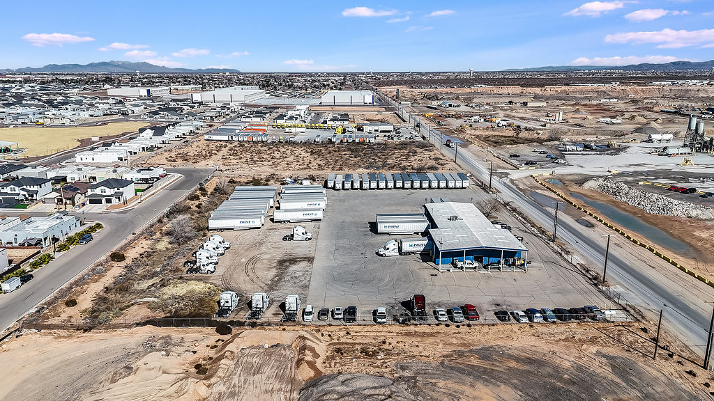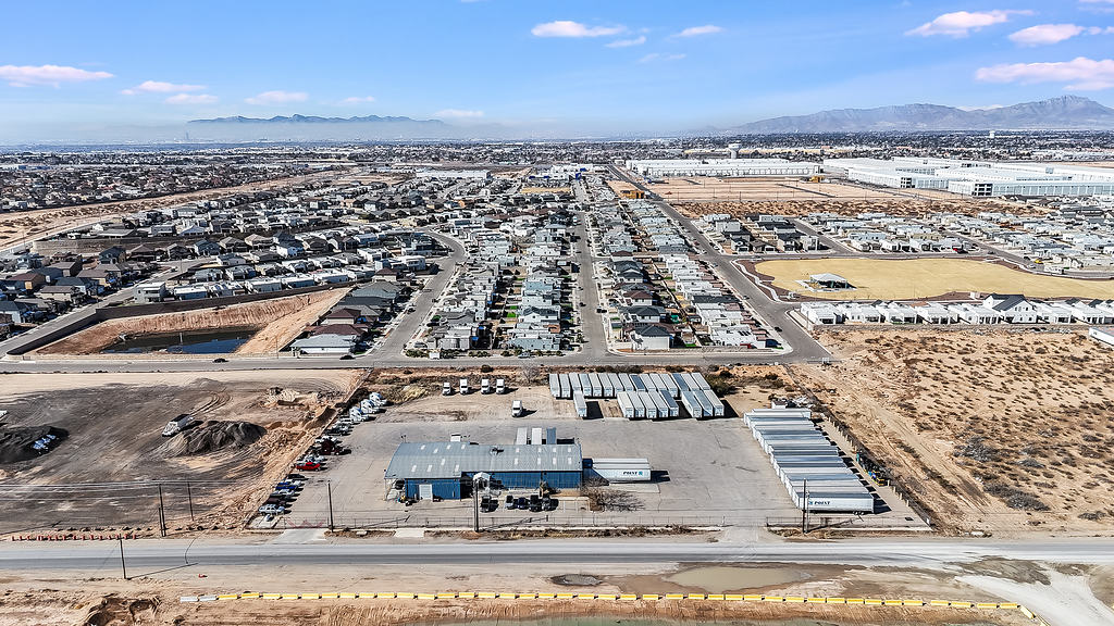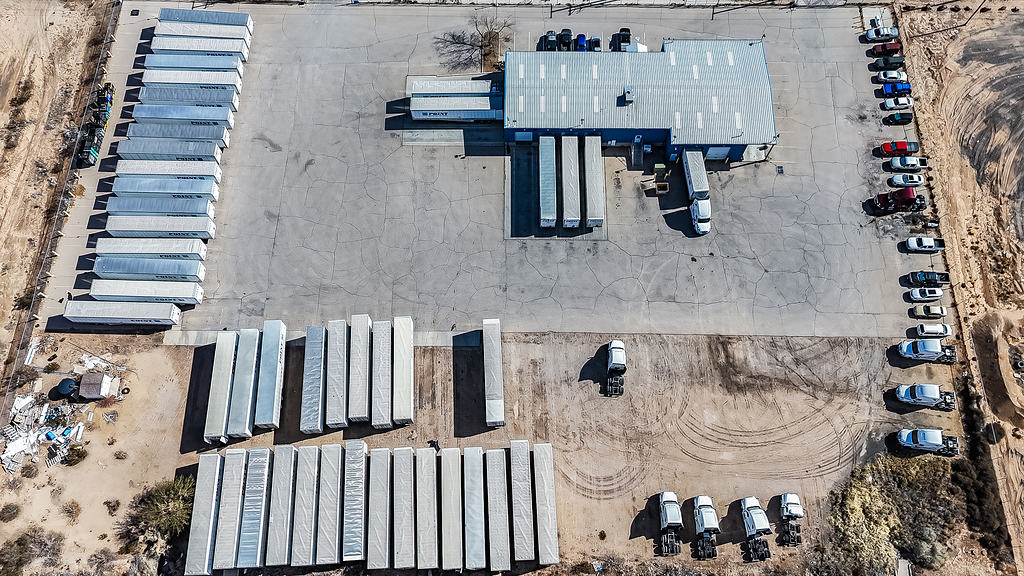 Aerial photography supporting the marketing of a commercial warehouse property, highlighting layout, access, and surrounding context for commercial real estate listings.