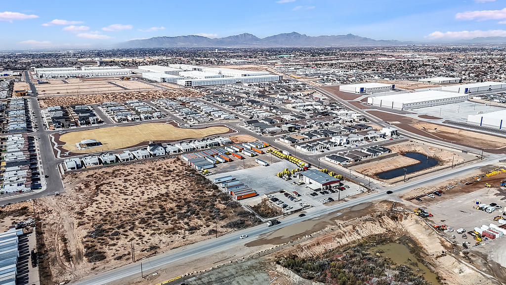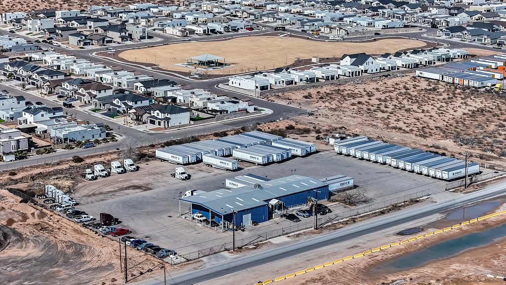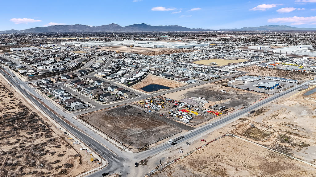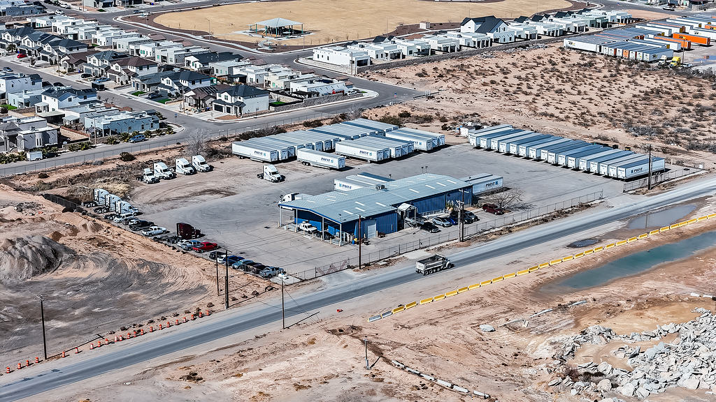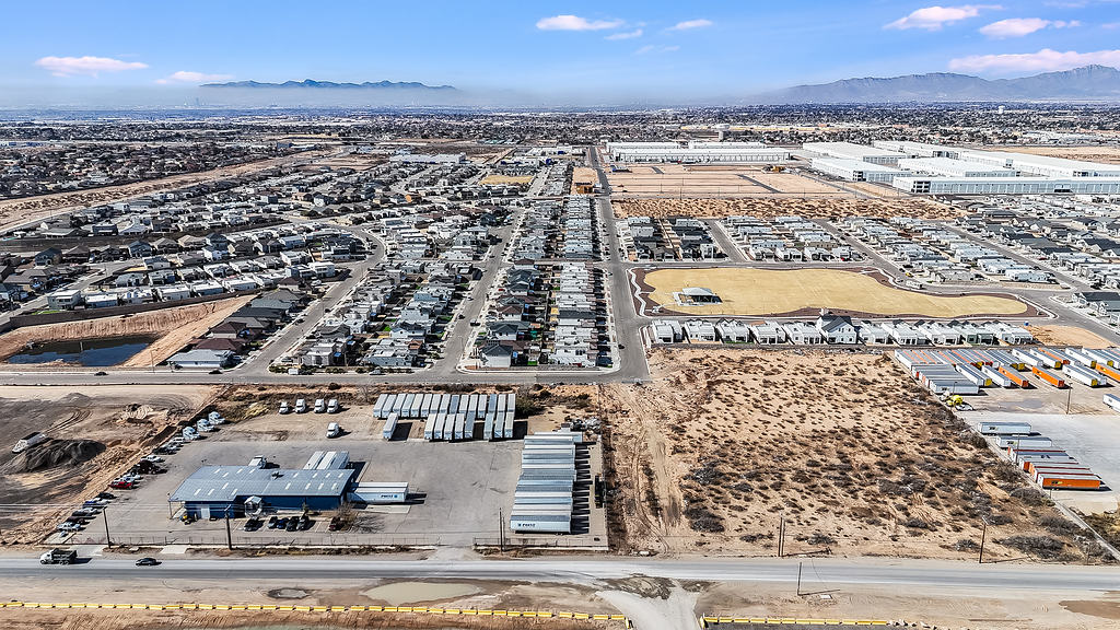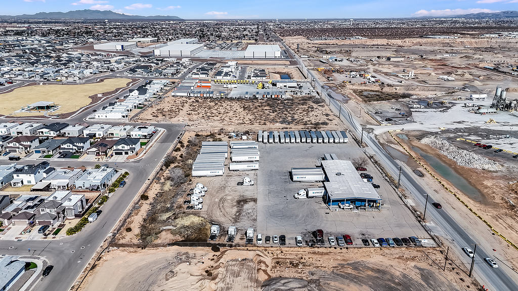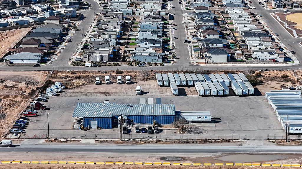 Aerial photography supporting the marketing of a commercial warehouse property, highlighting layout, access, and surrounding context for commercial real estate listings.